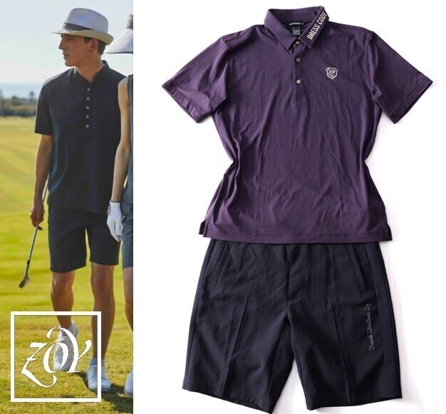 > ★正規★ZOY ゾーイ★ストレッチジャージー カタログ掲載セット 半袖シャツ Thick&Thin Stretch ショートパンツ 上下セットアップ★紫/紺