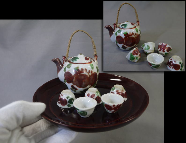 - 【ナ】アンティーク ままごと② 雛道具 ミニチュア 上手急須と湯飲 茶器揃 昭和レトロ