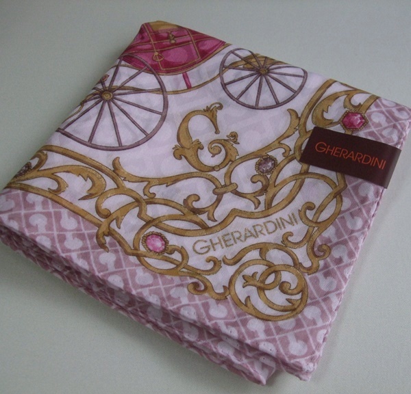 - イタリヤ老舗 GHERARDINI ゲラルディーニ 綿100% 大判ハンカチ 未使用品 ピンク系 百貨店 G モノグラム柄 日本製