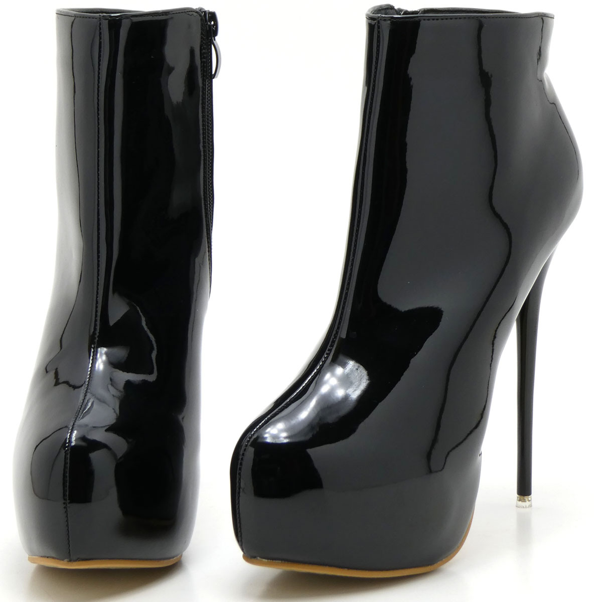 - 新品 大きいサイズ ショートブーツ ブラック 26cm 137260-42 エナメル調 前厚底ストーム ハイヒール