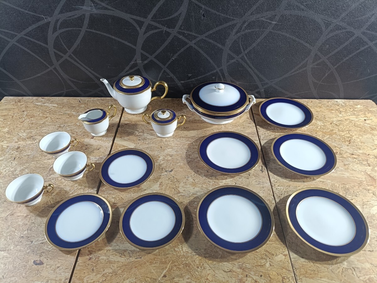 - (UJ010)大倉陶園 瑠璃片葉金蝕 食器まとめ 15点 カップ プレート ティーポットなど OKURA ブランド食器 陶器 中古品 現状品