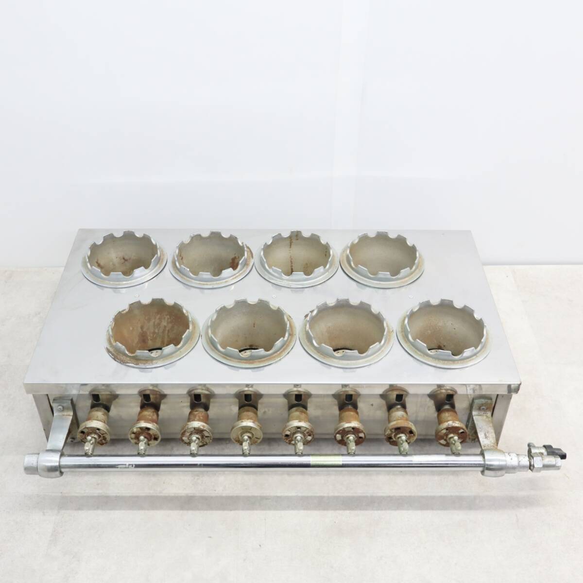- ∀ 厨房機器|釜めしガス炊飯器 二列(8個用)|業務用ガスコンロ 8口タイプ|LPガス/プロパン 幅 82.5㎝×奥行 44㎝×高さ 20㎝ ■P3052