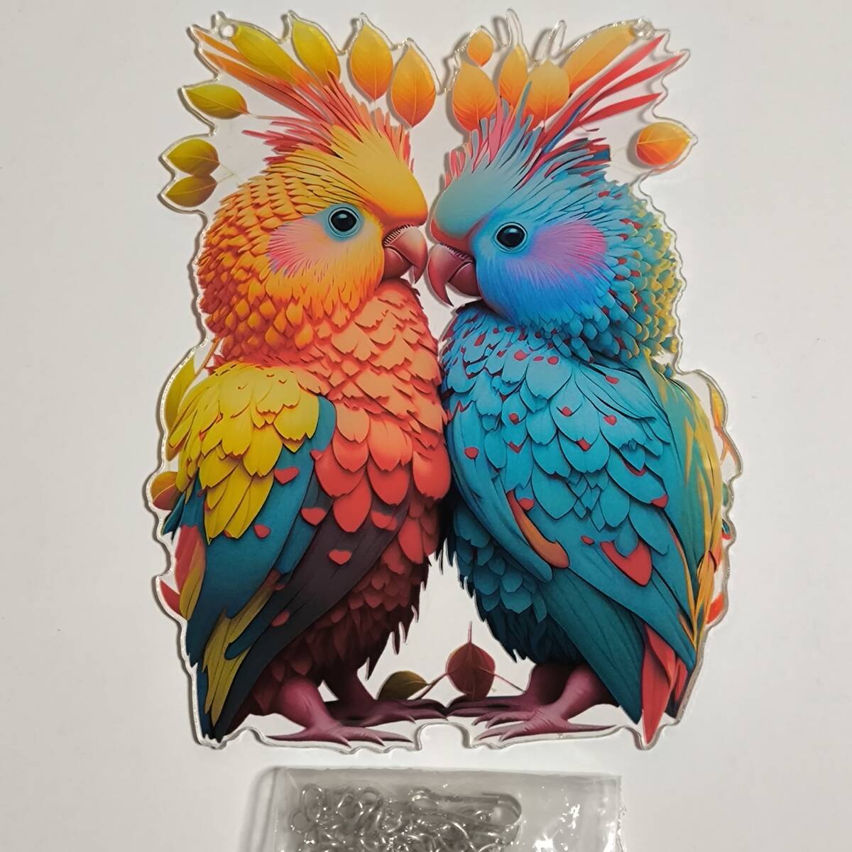 - 【寄り添う鳥 コカトゥー キバタン・カラフル】アクリルプレート 飾り サンキャッチャー チェーン付き オブジェ お洒落 壁や窓辺の飾りに◎
