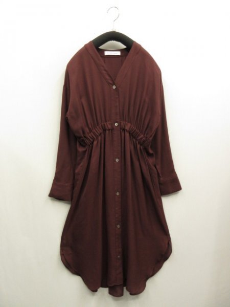 > エッセン ロートレアモン ★ 洗える Vネック ウール混 ギャザー ワンピース ★ サイズ38 ESSEN.LAUTREAMONT