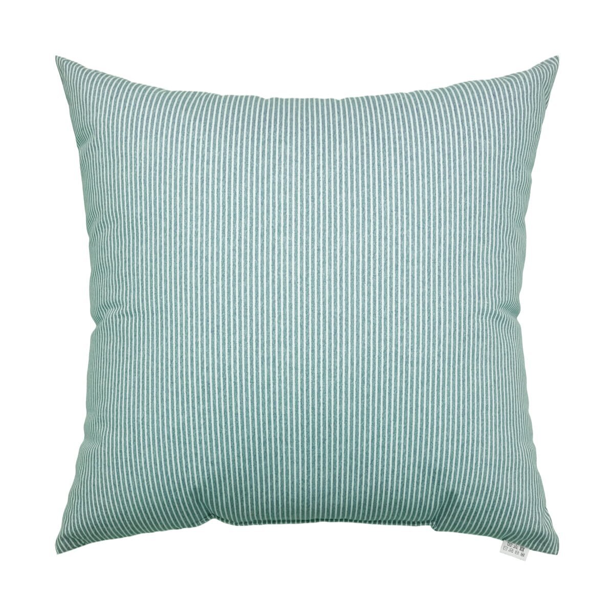 - クッション 本体 日本製 ヒッコリー デニム調 プリント グリーン 60×60cm 綿100% ロギー 素縫い ポリエステルわた 縦縞 ストライプ