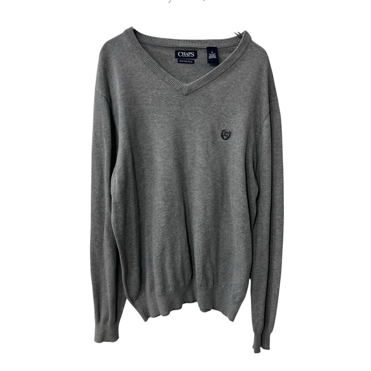 > a710-5130 CHAPS ニット セーター M グレー チャップス コットン混 無地 刺繍ロゴ シンプル Vネック トップス 秋物