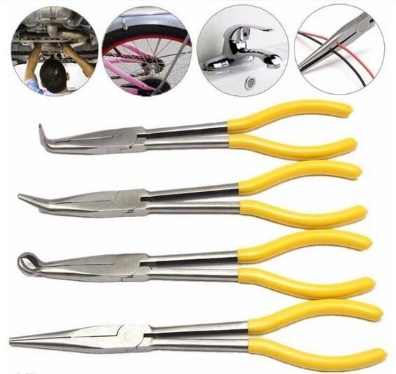> 4個セット 11インチ エクストラ ロングノーズ プライヤー セット ストレート メカニック 機器 ハンド ツール 金属加工 DIY