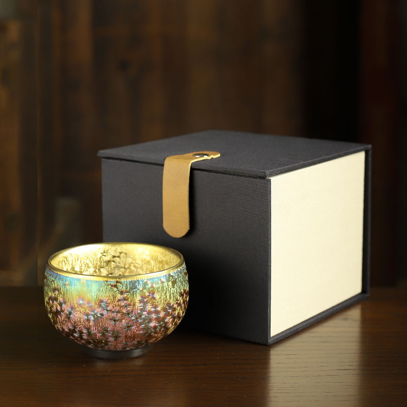 > 新品 *【変の美】七彩孔雀 金彩・銀彩 煌めき建盞茶杯 窯変天目茶碗 一点物 *ゴールド