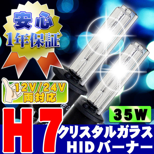 > HIDバーナー 35W H7 10000K 12V/24V 交換用左右セット UVカット加工 石英ガラス ヘッドライト/フォグランプ