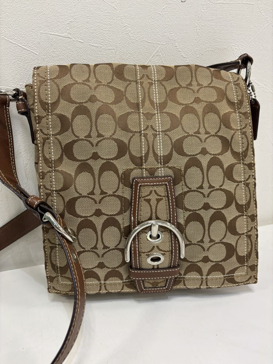 > COACH コーチ ショルダーバッグ シグネチャー 斜め掛け 総柄 レザー キャンバス ブラウン レディース