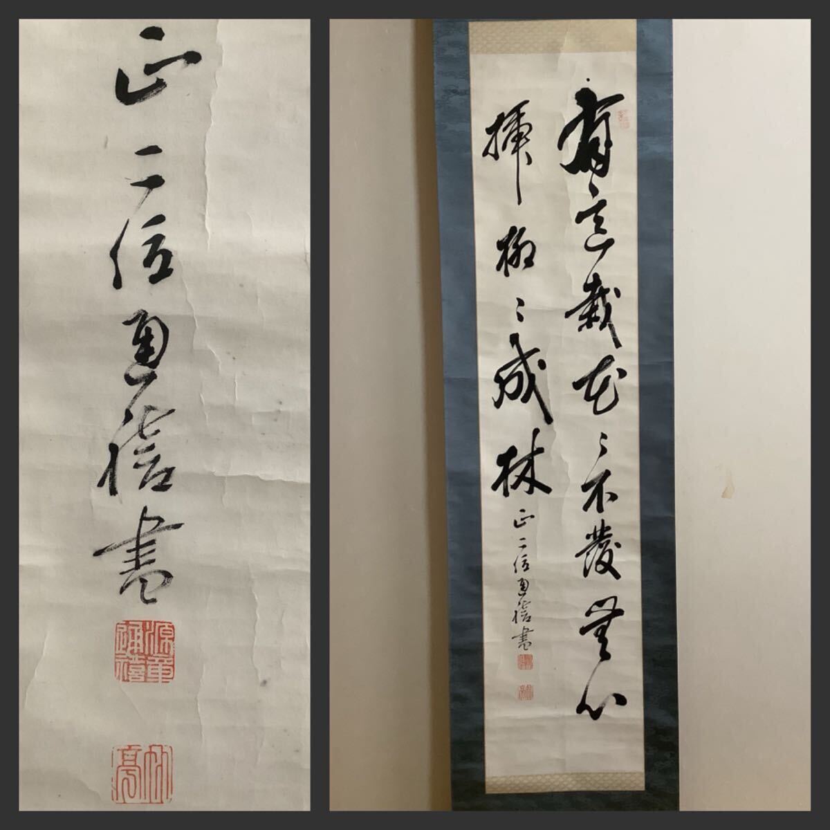 - 【模写】掛軸Oct707B[東久世通禧 二行書]紙本 仙石亮箱書/書画 幕末明治期政治家 公家 茶人 竹亭 古帆軒 墨蹟 古書
