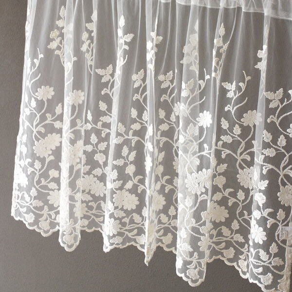 - カフェカーテン 60cm丈 レース おしゃれ 小窓 刺繍 カフェカーテン F 送料無料(一部地域除く) com9346