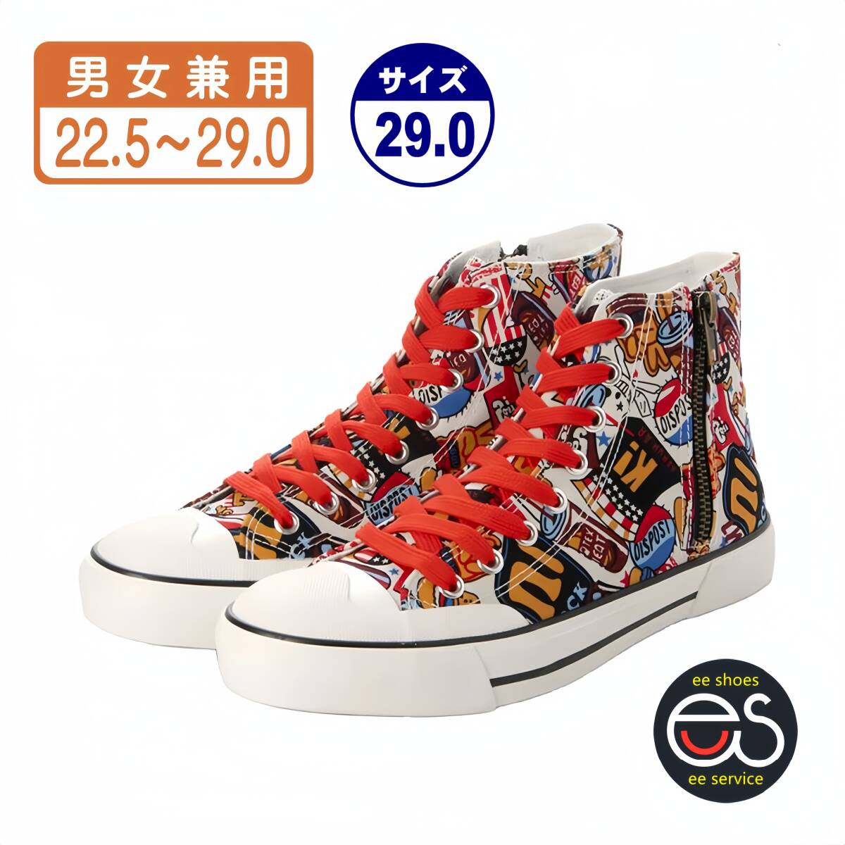 > ★新品・人気★【23557-red-290】キャンバスシューズ ハイカットバスケットシューズ ファスナー付きスニーカー 男女兼用