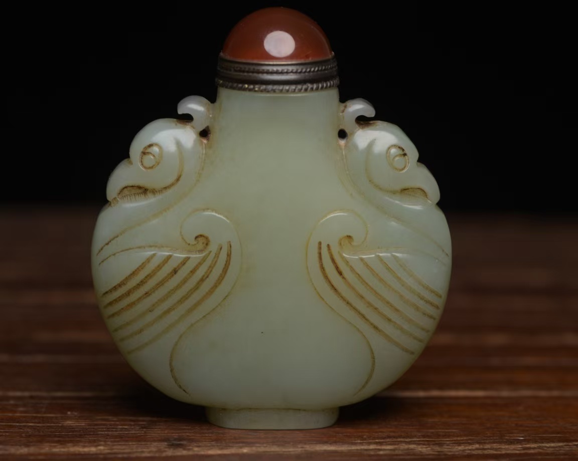 - 旧蔵 清時代 和田玉彫 鼻煙壺 根付 極細工 古擺件 古置物 中国古玩 骨董品 時代物 稀少唐物