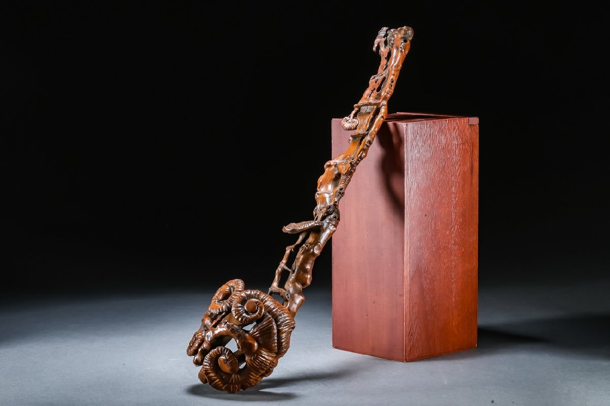- 【清】某有名オークション購入 清時代 竹根彫 随形如意彫物 当時物保証 古置物 古擺件 中国伝来 古美術 時代コレクション7L6-58