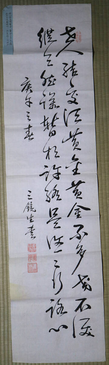 - sgk6) 漢亭 黄泗銓 三鏡齋 二行書「漢詩文」墨書 紙本 捲り・解読文紙片/ピン留め有り <中国書画