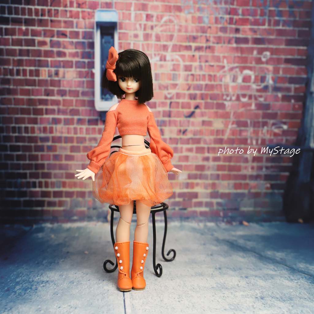 - 人形服msdr-4944オレンジオフショルダーネックTシャツとバールンチュールスカート(ピュアニーモ用)