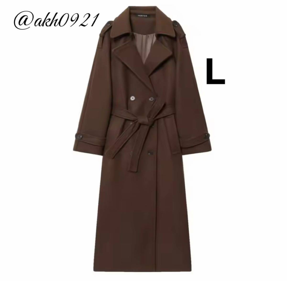 - 新品未使用★2025 A/W 秋新作★vintage ヴィンテージ レトロ brown ブラウン ロングコート アウター Lサイズ レディース★ZARA 好きな方に