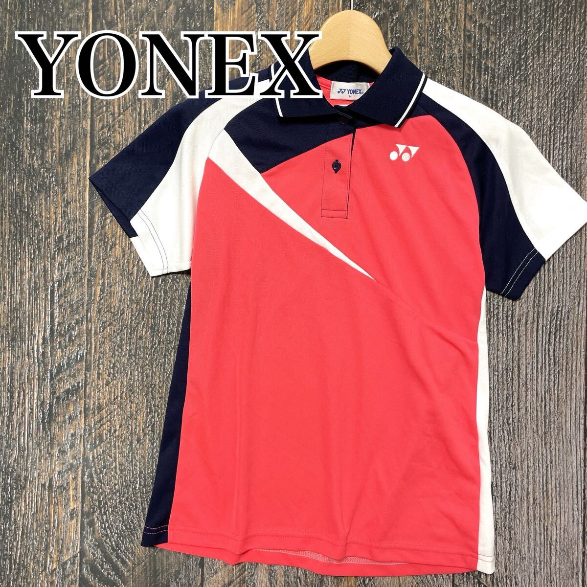 - YONEX ヨネックス テニス ポロシャツ 半袖 レディース Mサイズ M ピンク ネイビー 紺 白 ホワイト バドミントン スポーツウェア 襟付き