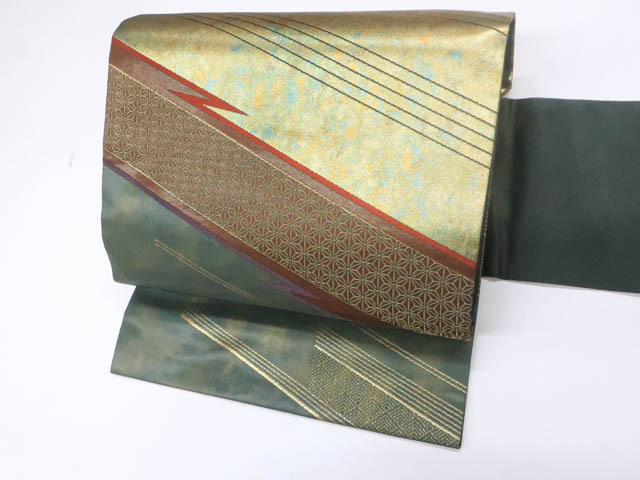 - 《京都一輝堂》【着物】九寸名古屋帯 太鼓柄 抽象文 25b02-324