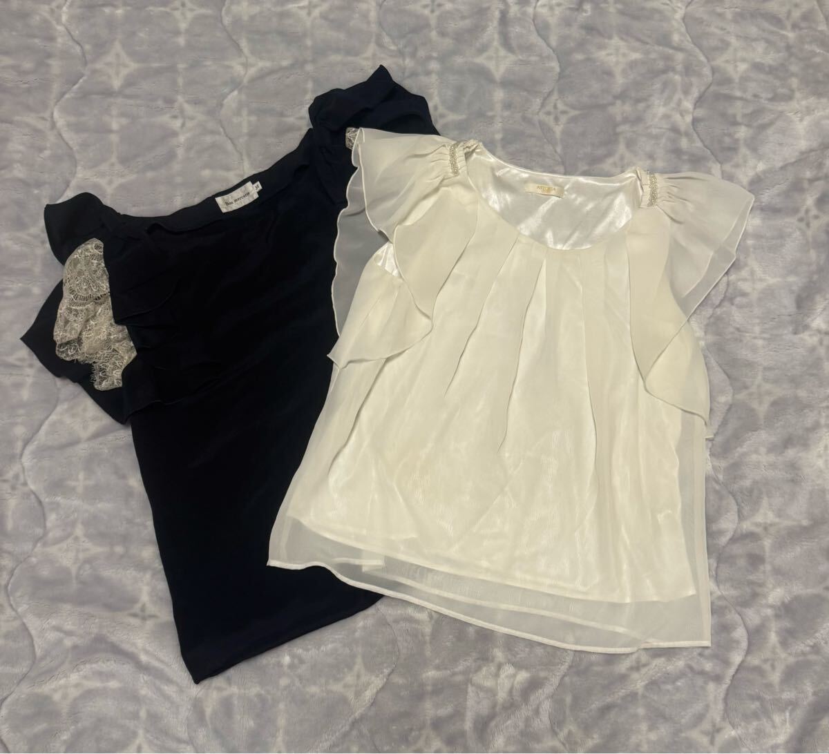 - ワールド ボンメルスリー アストリアオディール 2枚セット カットソー ブラウス トップス パール フレアスリーブ オフィスカジュアル 白