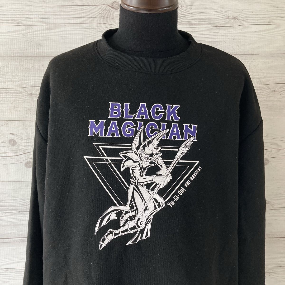 - 遊戯王 ブラックマジシャン スウェット Lサイズ ビッグロゴ 3420 トレーナー ブラック 古着