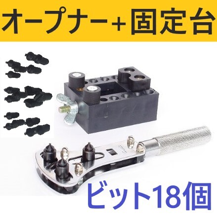 > 3点支持オープナー+時計固定台 防水式腕時計用 スクリューバック 18ビット 電池交換 裏蓋開閉工具 爪幅調整式 カバーケース外し修理ツール