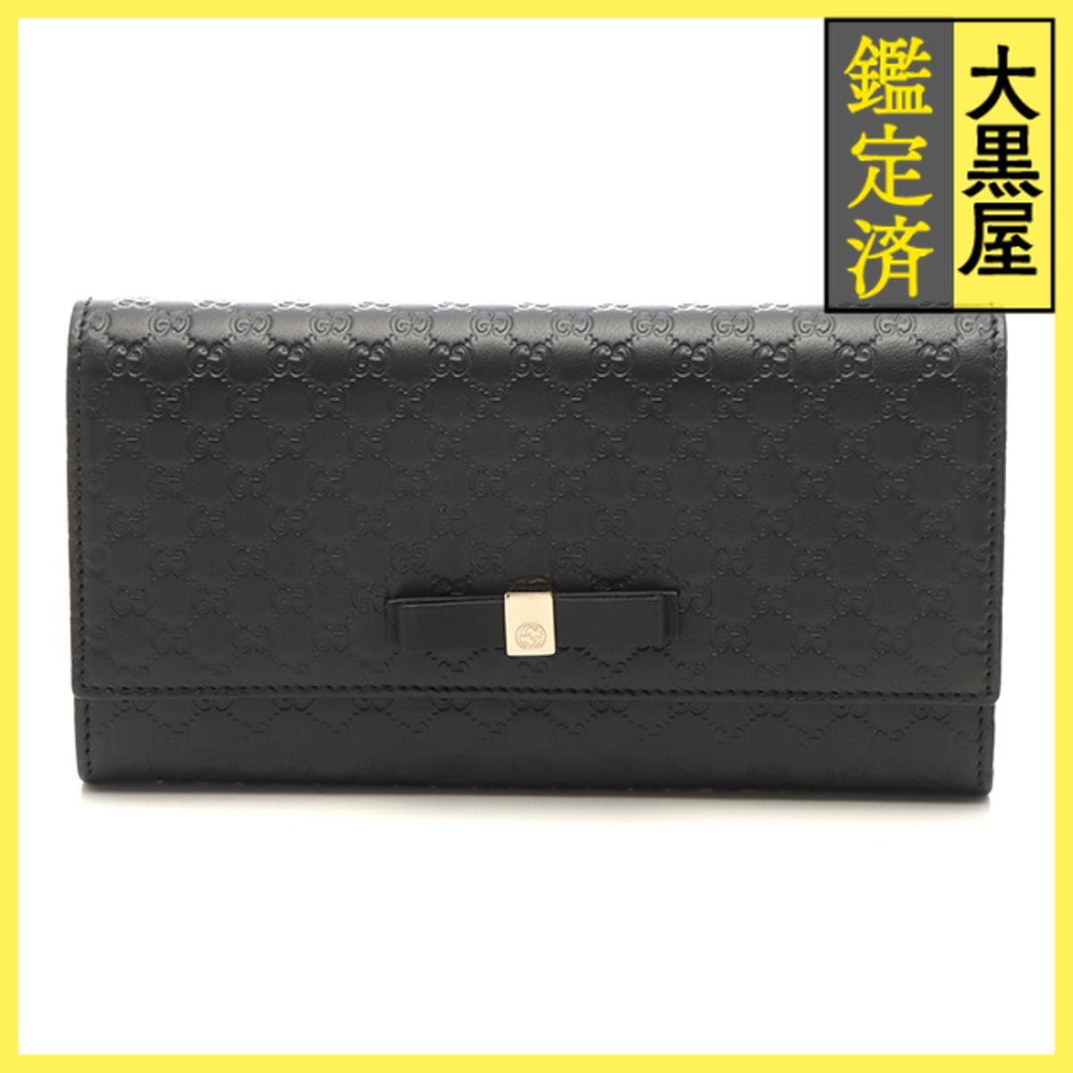- GUCCI グッチ グッチシマ リボン ZIP長財布 388679 ブラック カーフ