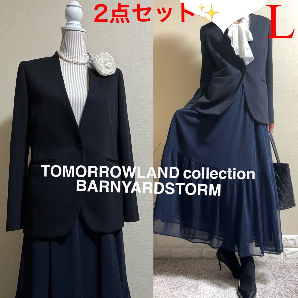 > L スーツ!トゥモローランド TOMORROWLAND ノーカラージャケット バンヤードストーム ロングフレアスカート 濃紺 七五三 入学式