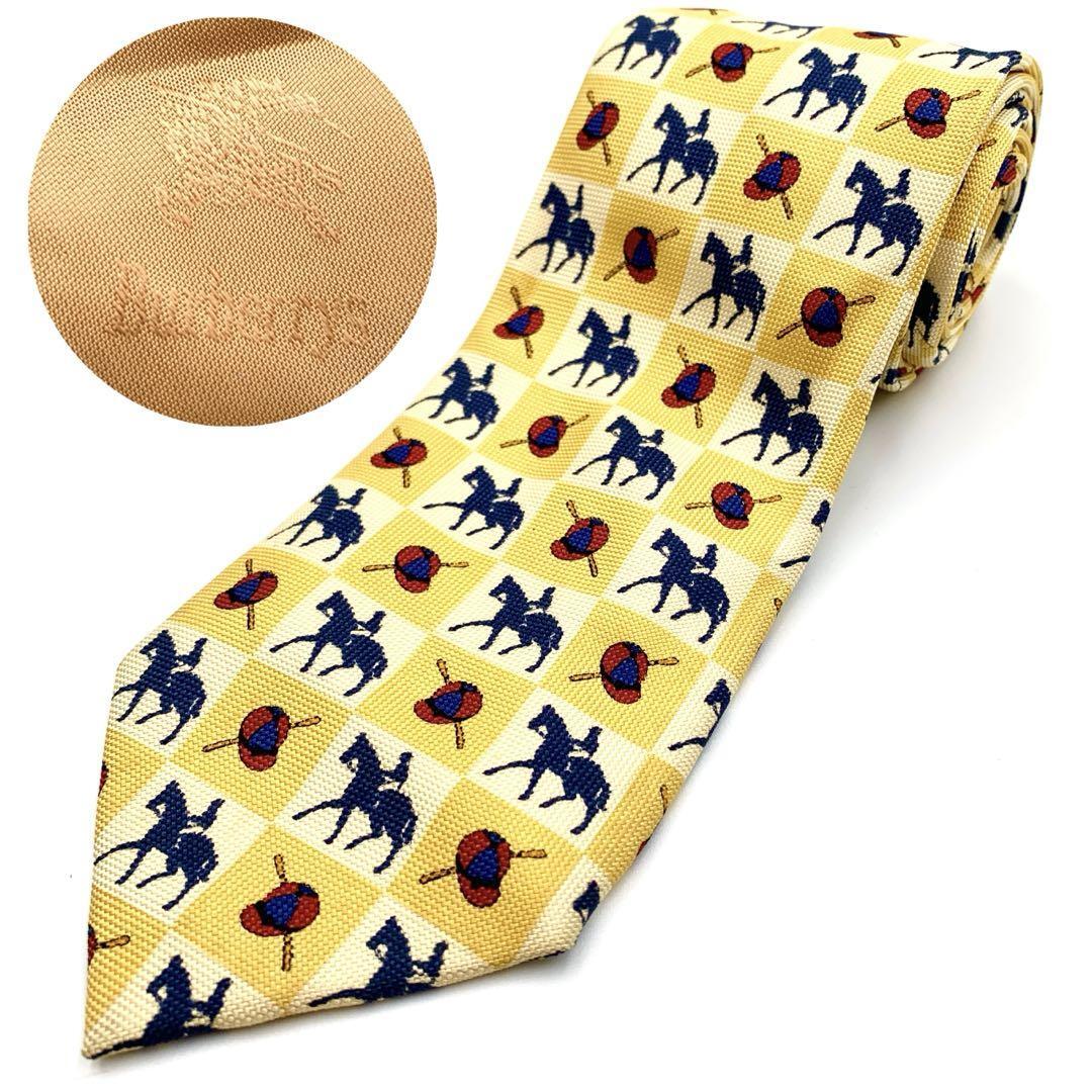 - Burberry バーバリーズ ネクタイ 総柄 イエロー ホース 騎手