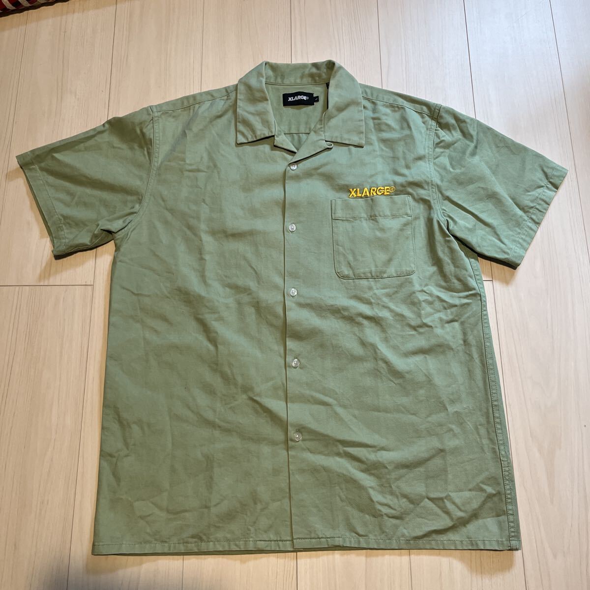 - 1円スタート XLARGE エクストララージ メンズ古着 半袖シャツ グリーン 刺繍 開襟シャツ Lサイズ