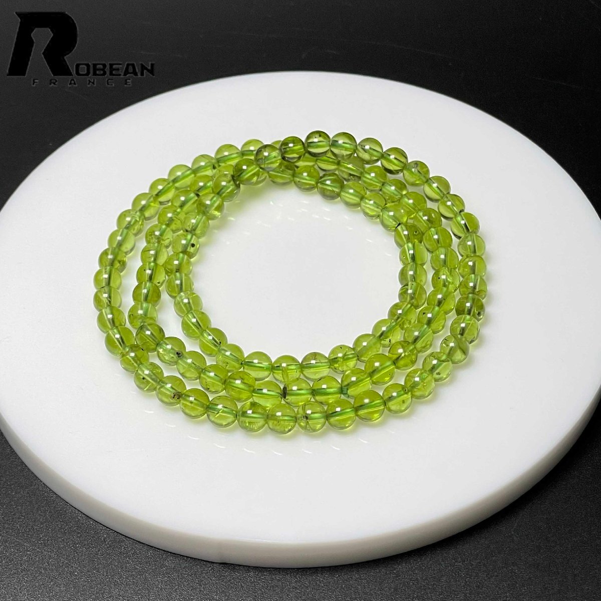 > 綺麗 EU製 定価15万円★ROBEAN・グリーンペリドット★パワーストーン 3本巻きブレスレット 天然石 綺麗 お守り ギフト 5.1-5.4mm M0728075