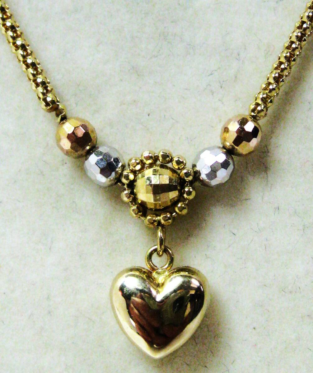 - 【東京 谷中 質屋おぢさん】極美品750 18金ネックレス ハートぶらさがりWG・PGミラーボール付40cm