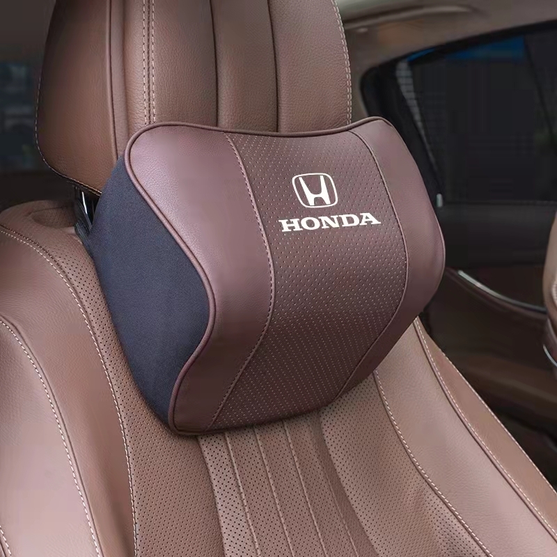 > ホンダ車用記憶 通気性弾性 ネックパッド レザー 首 ネック 2個 取付簡単 LOGO付 シビック ステップワゴン フィット ヴェゼル CR-V 4色選択