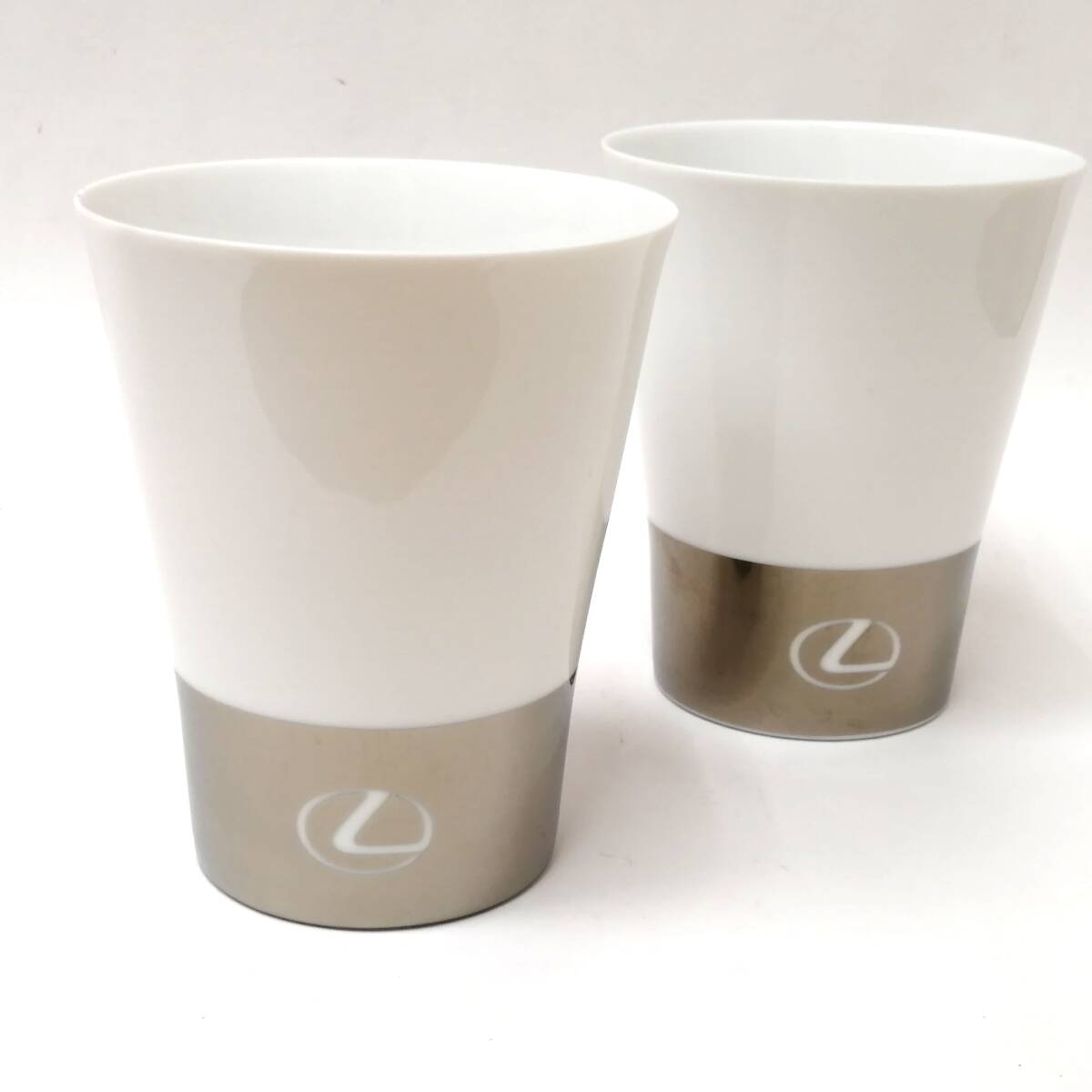 - 〇25100403 LEXUS レクサス オリジナルフリーカップ 2客 ペアセット 陶器 美濃焼 白磁 タンブラー 高さ約11cm 口径約9cm コレクション