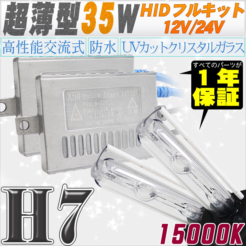 - 高性能 薄型HIDキット 35W H7 15000K 12V/24V 【交流式バラスト&クリスタルガラスバーナー】
