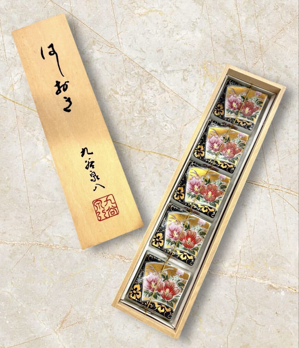 > 【未使用品】九谷焼 九谷泉八 五客揃 はしおき 金彩 牡丹 花柄 箸置き 箸枕 木箱入 伝統工芸