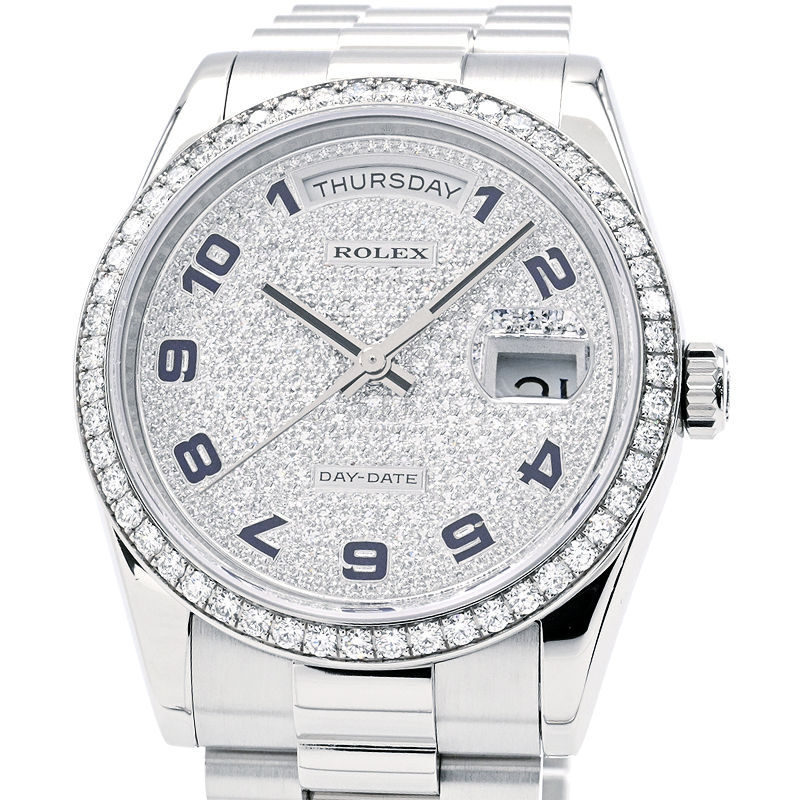 > [3年保証] ロレックス メンズ デイデイト 118296 ランダム番 Pt950 ベゼルダイヤ 箱保 全面ダイヤ プラチナ 自動巻き 腕時計 中古 送料無料