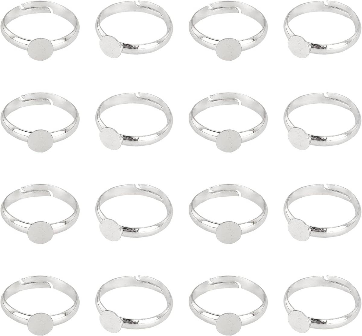 > ★★40個 リングパーツ リング 台座 6mm 平皿付き シルバー 調節可能 指輪用ベース 真ちゅう製 丸型 ハンドメイド アクセサリーパーツ