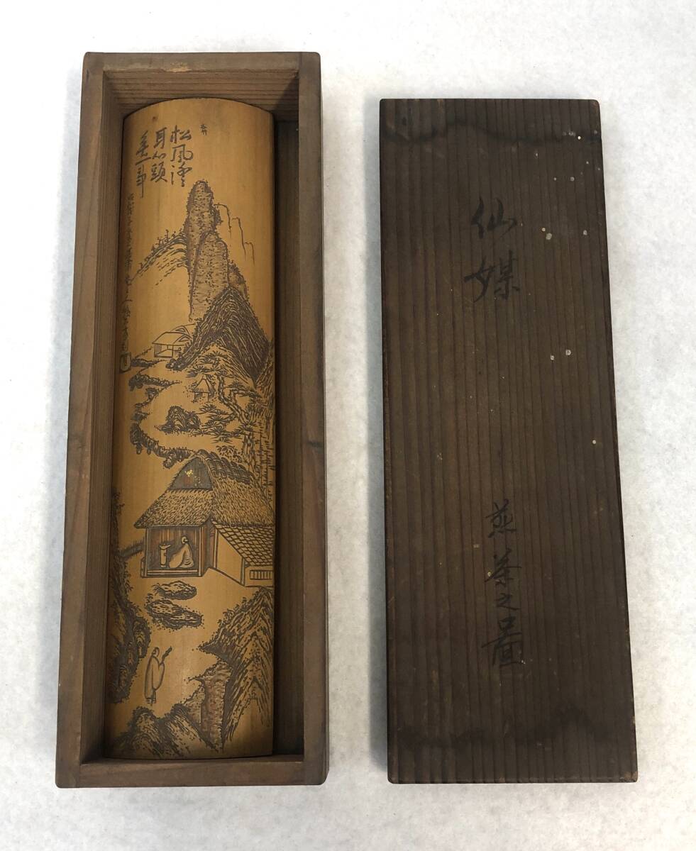 - 仙媒 時代茶道具 茶量 竹製 竹細工 茶器 約21cm