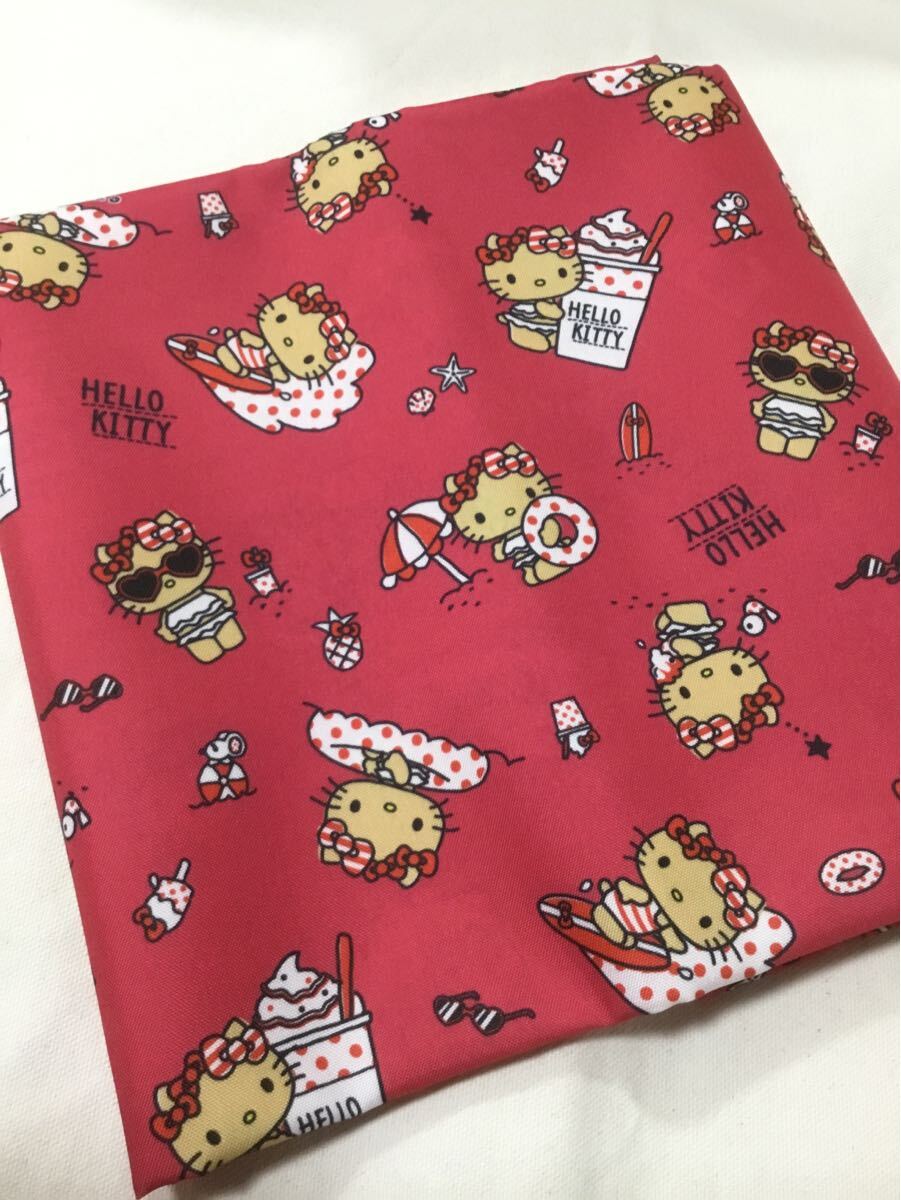 - ☆ハローキティ生地 サマーデイズ レッド 布 生地 サンリオ ハンドメイド用生地 手作り用生地 50㎝ 日焼けキティ生地☆