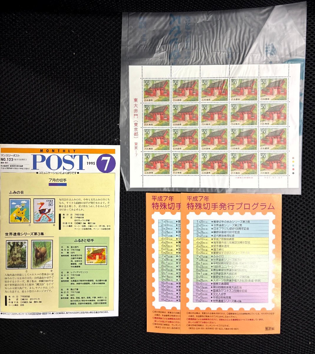 > 53 切手シート 50円×20枚 1シート 東大赤門(東京都) 1995.7 H07.07.07 ゾロ目 未使用 カラーマーク