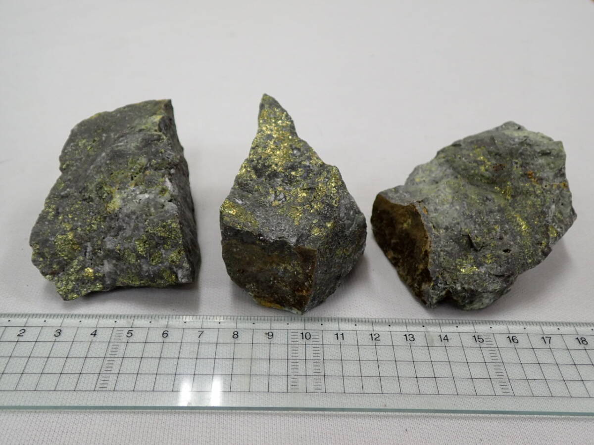 - 日本産鉱物 岩手県西和賀町土畑鉱山産 黄銅鉱 3点 国産鉱石 鑑賞石 現在、土畑鉱山は閉鎖されて立入禁止となっているようです