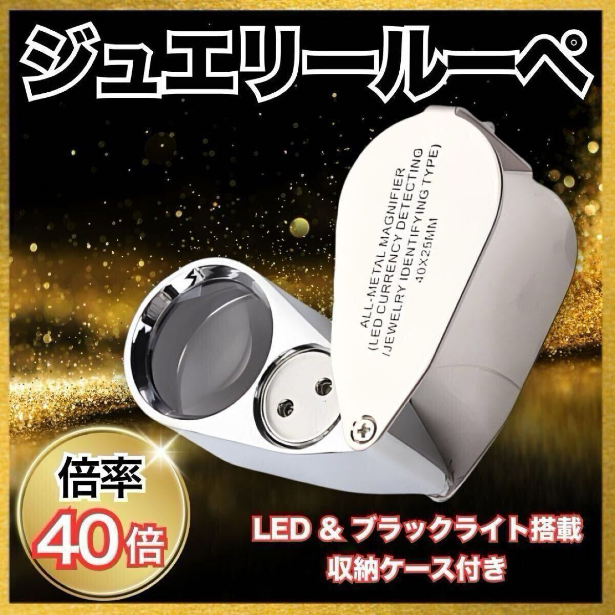> ジュエリールーペ 40倍 ライト付き LED UVライト 読書 宝石 お札 貴金属 精密作業 DIY向け 工具 拡大鏡 折りたたみ 時計 修理 プロ仕様。