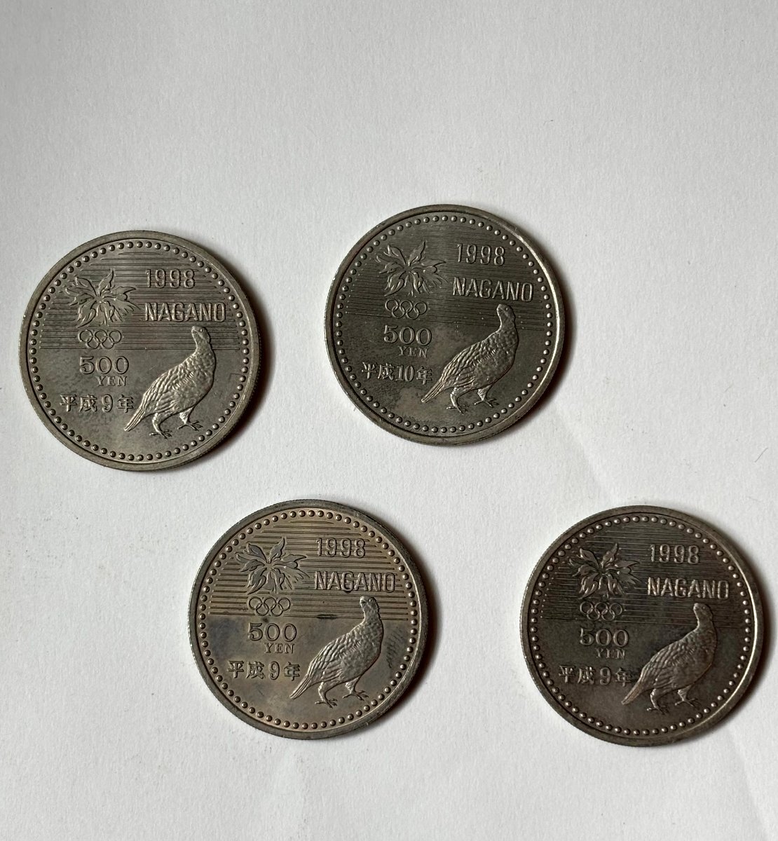 - 1-2 4枚 長野オリンピック 冬季競技大会記念貨幣 500円 平成9年 発行 コレクション 記念硬貨 スノーボード スキージャンプ