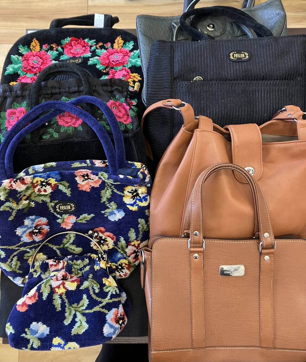 - #1781A レディース バッグ おまとめ出品 8点 FEILER タグ付き品あり ノーブランド品 中古品 黒 茶 柄 ハンドバッグ