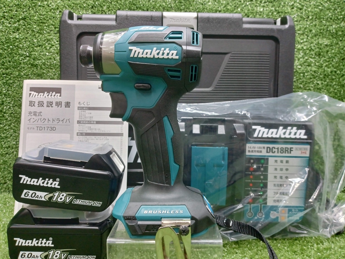 > 未使用 makita マキタ 18V 充電式 インパクトドライバ 6.0Ah バッテリー2個 充電器付 フルセット 青 TD173DRGX ②