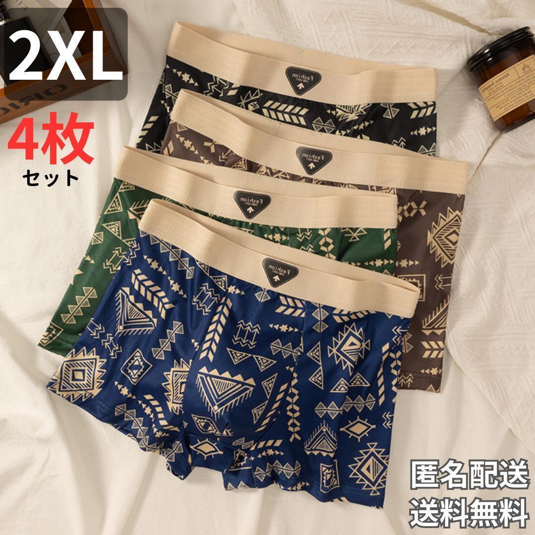 - メンズ ボクサーパンツ 4枚セット 2XL ネイティブ柄 下着 前閉じ パンツ おしゃれ アンダーウェア