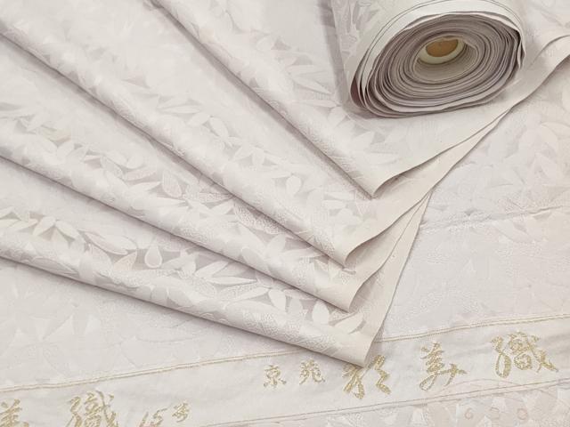 > 平和屋着物▼色無地 反物 着尺 彩美織 笹地紋 白藤色 逸品 未使用 DAAW7180zzz