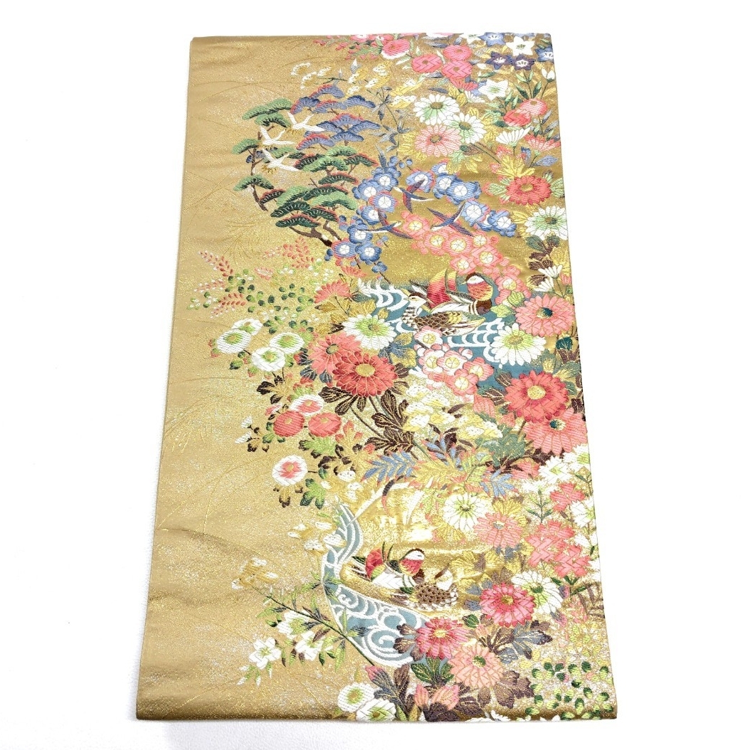 > 帯124 となみ織物謹製 純金箔 高級 正絹 六通 袋帯 オシドリ 松 jeigksc